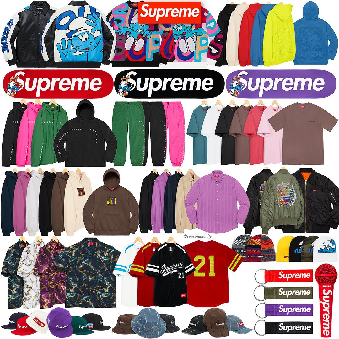 Fall/Winter Week 6 2020 is a collab with none other than the enterprise that is the Smurfs! There will be 5 different pieces dropping with an iconic blue Smurf character on them. Here is what's dropping: