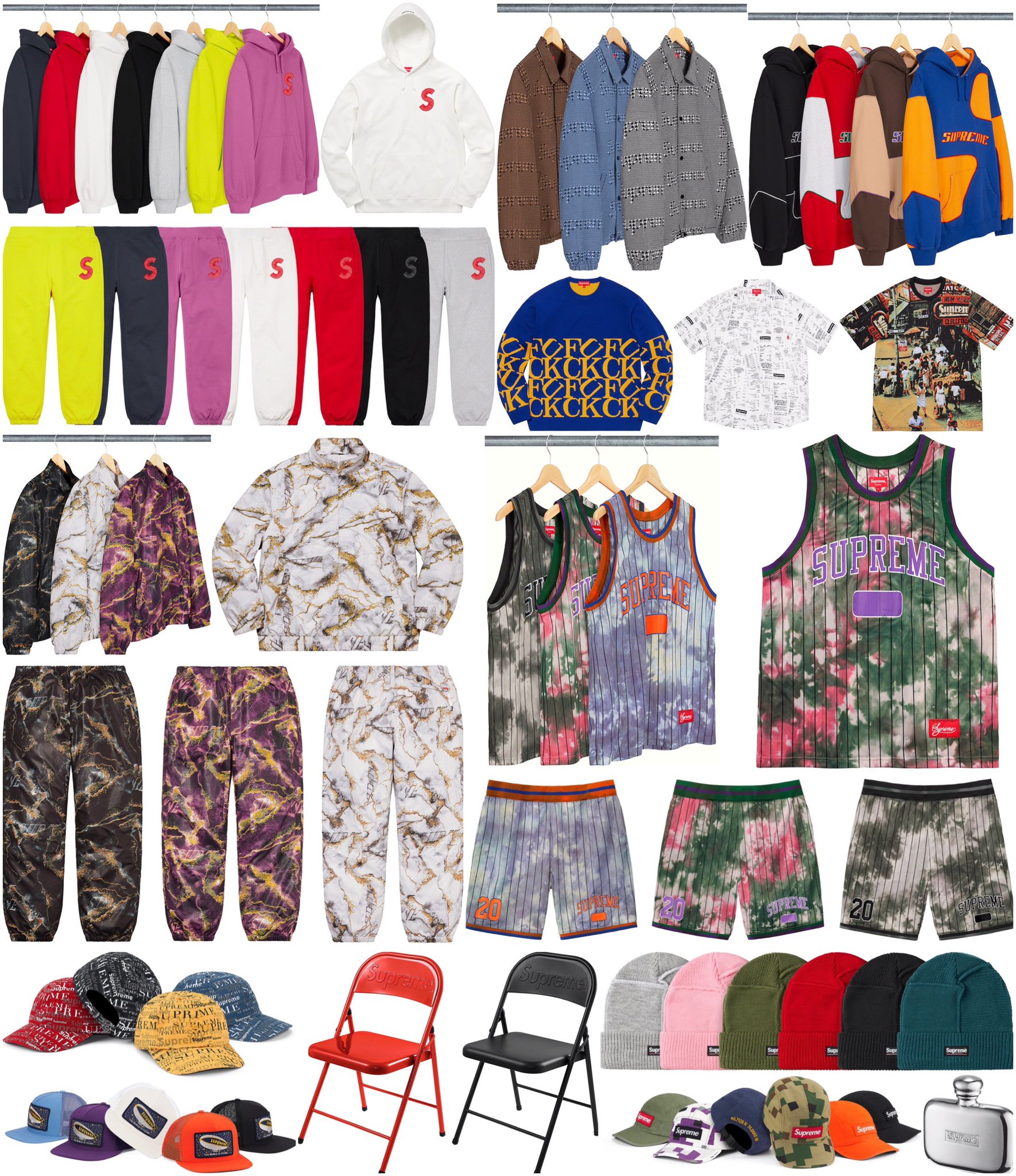 Week 2 features a collaboration with Nike dropping a crewneck sweatshirt, anorak jacket, sweatshorts, and ripstop pants. It seems the most popular item dropping this week is a metal folding chair with the Supreme logo embossed on them. They will be available in black and red and might be the first thing to sell out.