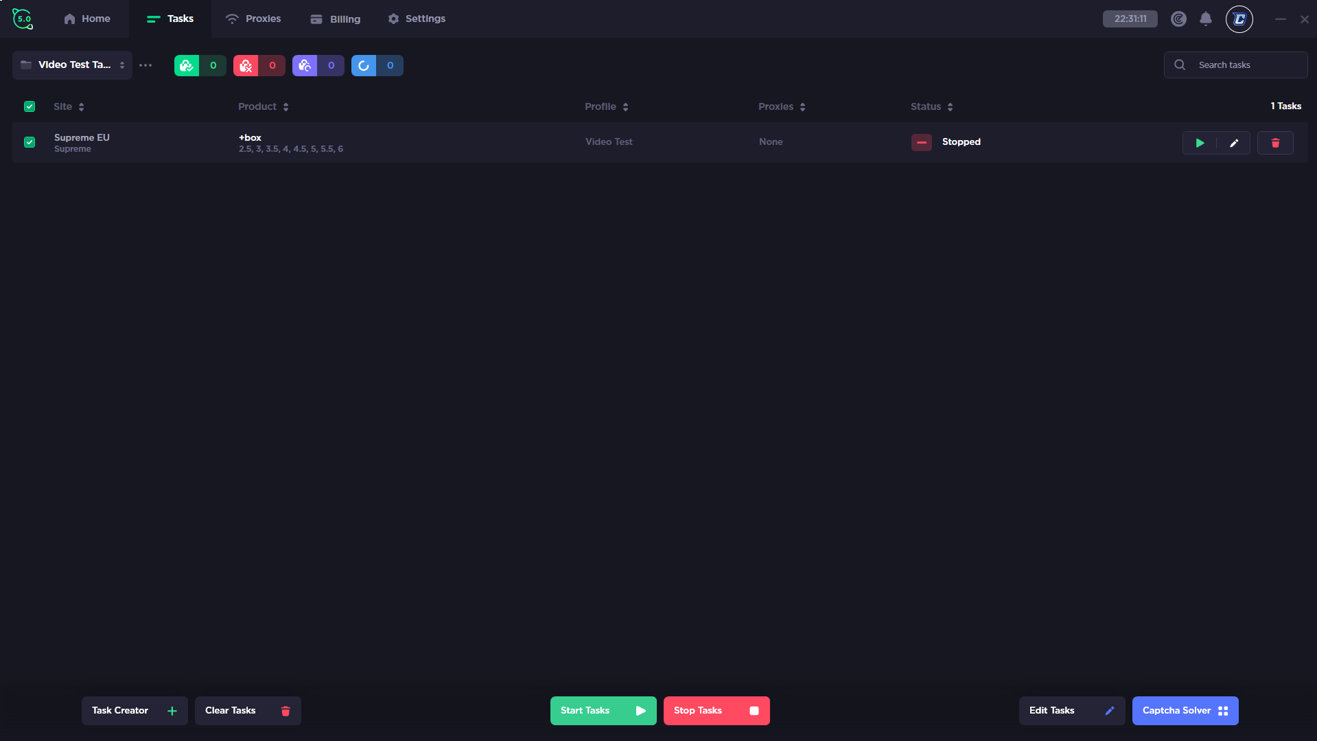 Supported sites: Shopify, Kith, Undefeated, CNPTS, Jimmy Jazz, Shoe Palace, Travis Scott Shop, Custom Site Support, Footsites, Footlocker US, Champs Sports, Footaction, East Bay, FTL Kids, Supreme, Supreme Signup, Mesh, Size?, Footpatrol, JD Sports, The Hip Store, Yeezy Supply US, FNL & JD Sports US, Offspring.