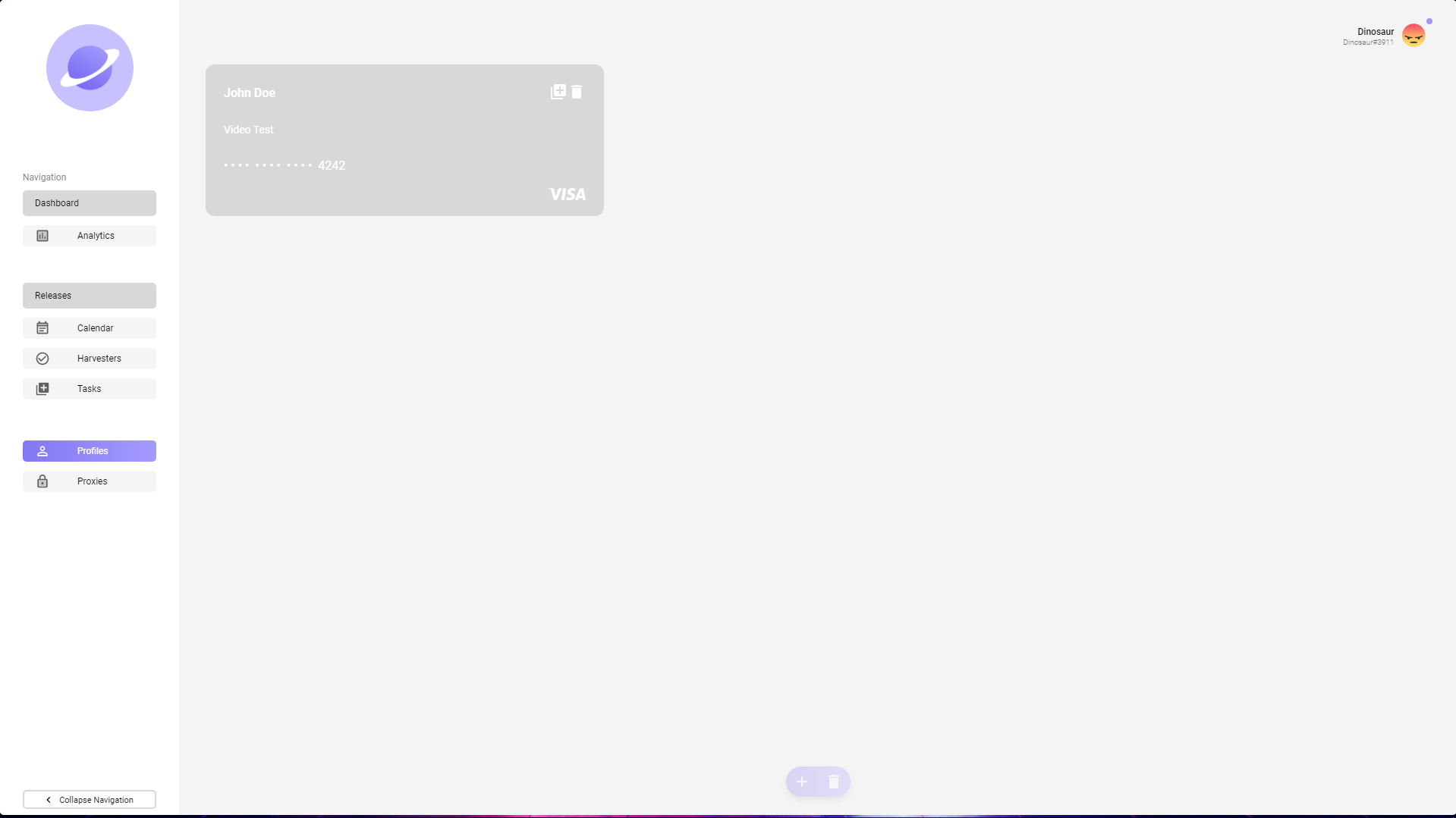 On this window within Nebula, you can view and create profiles within the bot that will be used with your tasks. Every profile that's created will show up as a tile on this page with some elements of the profile on the tile for distinguishing purposes. Finally, you do have the option to duplicate the profile or delete them if you wish.