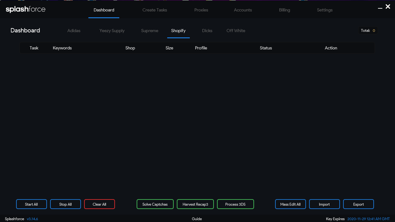 Splashforce retails for $300 and has a renewal fee of $60 every 6 months. This is a very successful bot across all the sites it supports and when they do restock through their designated Twitter (@splashforce) they tend to sell out within a few seconds. It holds a large after market value too given the amount of success it has and the demand for the bot itself.