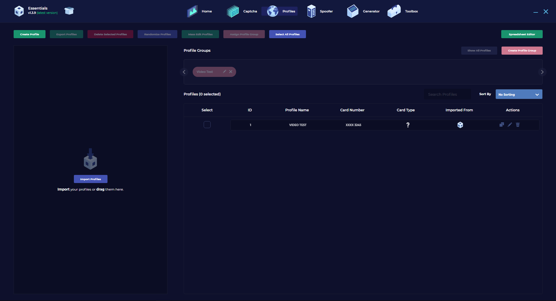 On this window you can view the profiles that you can import and export within Essentials. You can also create profiles within essentials which can be entered into profile groups for segregation purposes. You can also import profiles from the spreadsheet editor within Essentials which can be quite useful. When storing your profiles you can mass edit them so making changes to multiple profiles will be done efficiently instead of individually editing each one.