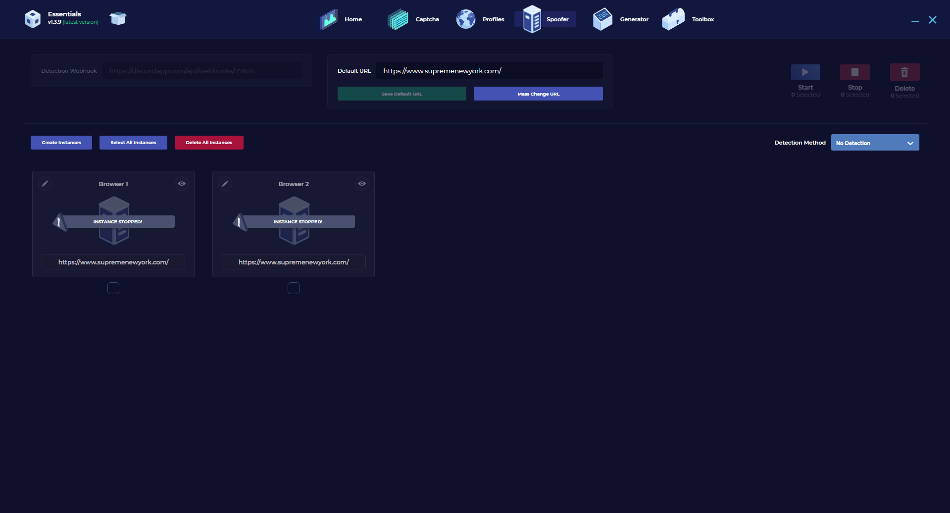 On this window you can navigate to the different generators within Essentials. You have the account generator in which you can generate accounts for different websites within seconds. You then have the cookie generator which allows to generate cookies to be used in your spoofer instances or export to different applications. Finally, they have a proxy generator which allows you to quickly generate proxies at a fraction of the typical cost.