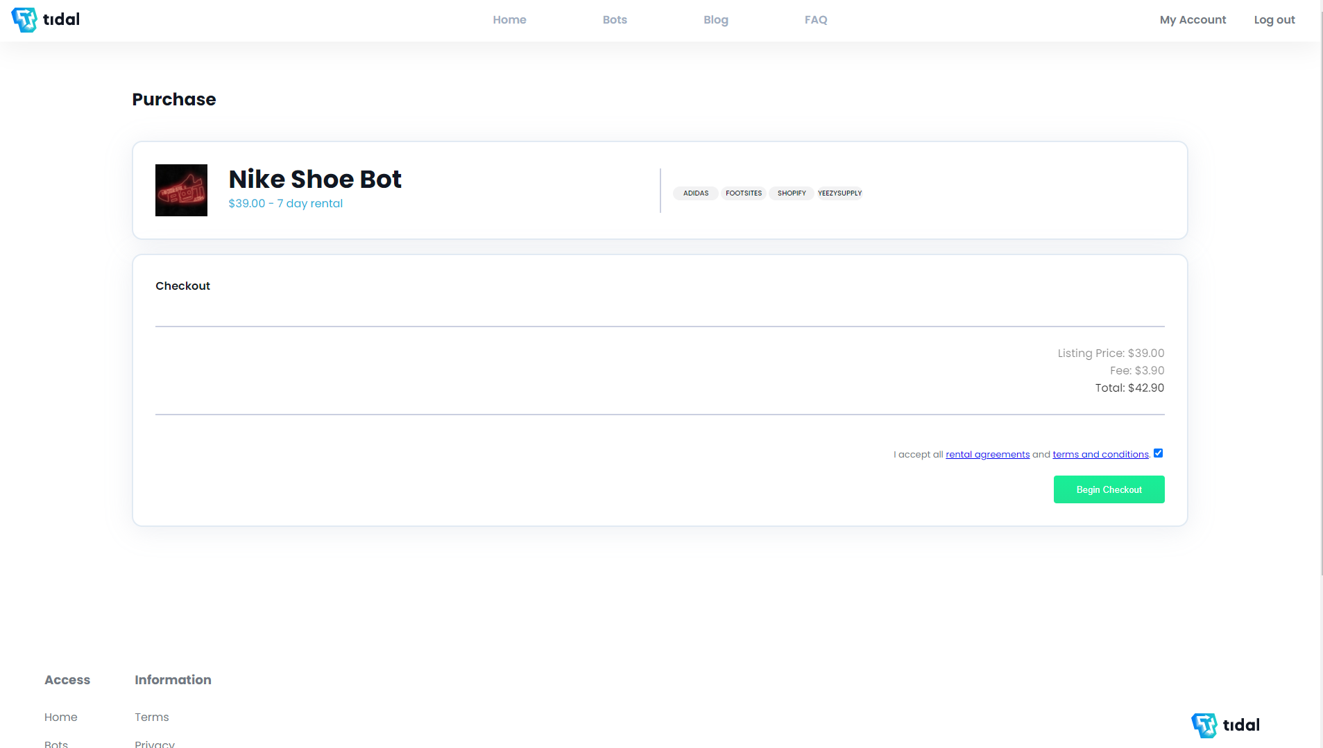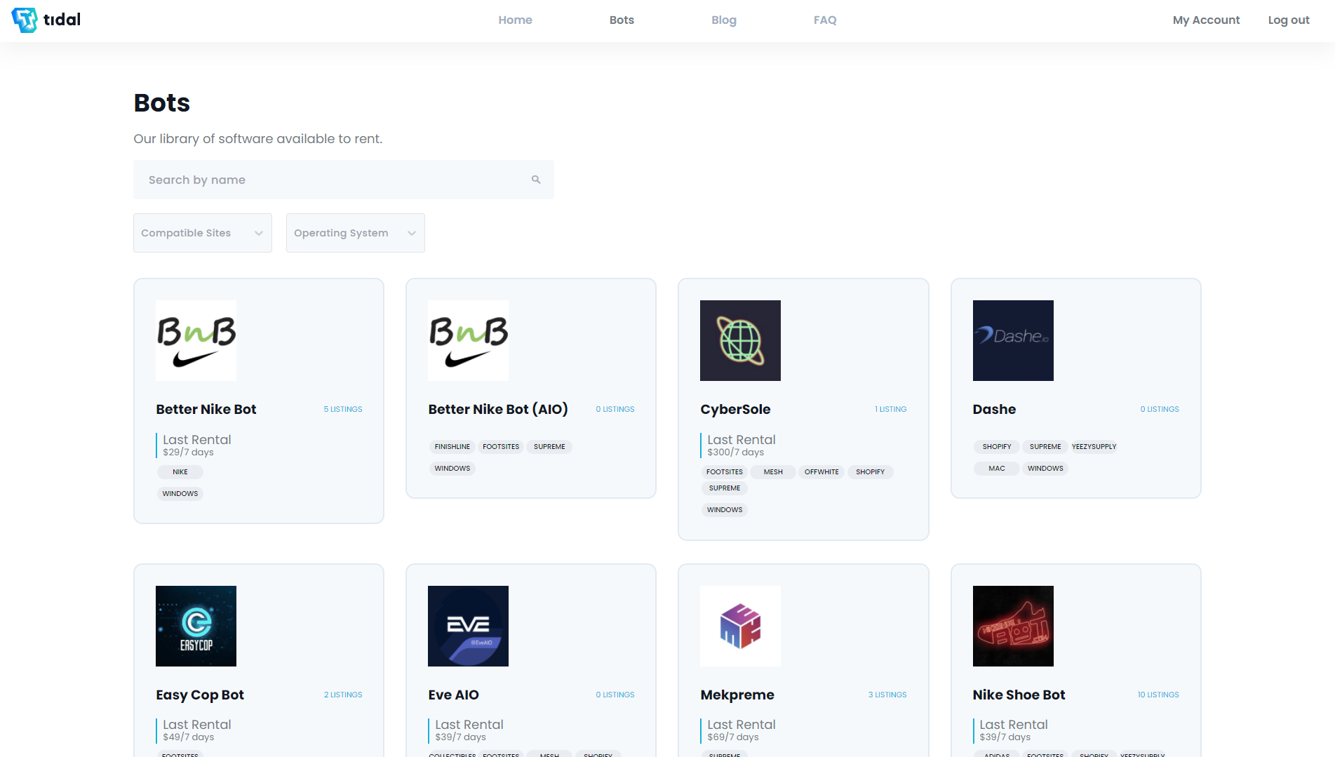 Tidal market is the best place to secure your favorite bots without having to buy them, they have taken the concept of renting and made it very easy to take part in. You can browse through some of the best bots on the market such as CyberAIO, Balko, Polaris, EVEaio, Dashe and many more. We will be showing you the process of renting a bot of your choice within a few simple steps on this page. Finally, you can check out the website here as well as their Twitter page here.