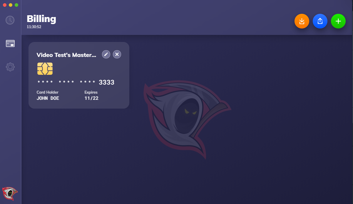 On this page we can manage our billing profiles that we can use with our tasks. We can import or export profiles if we wish using the two buttons at the top right and also create a profile taking us to the creation screen by clicking the green addition button. Once a billing profile has been successfully created it will then appear here in the form of a card showing a bunch of details so you can differentiate it from other billing profiles that you create. On each profile you can see the last 4 digits of your card, name, expiry date, card type and the billing profile name.