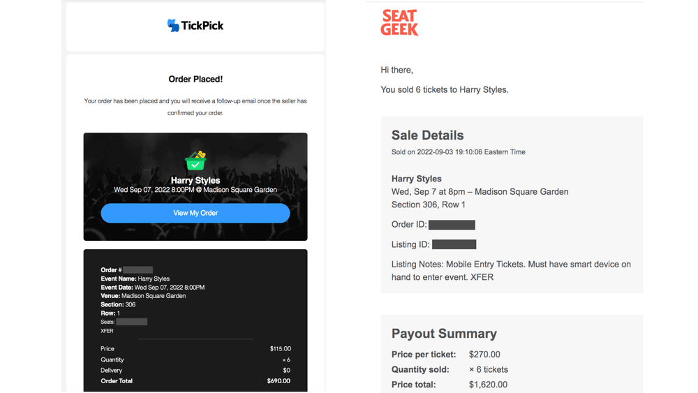 See one example below – we bought 6 tickets off TickPick for $115 each which was incredibly cheap, and then sold a few weeks later on Seatgeek for $1,600.