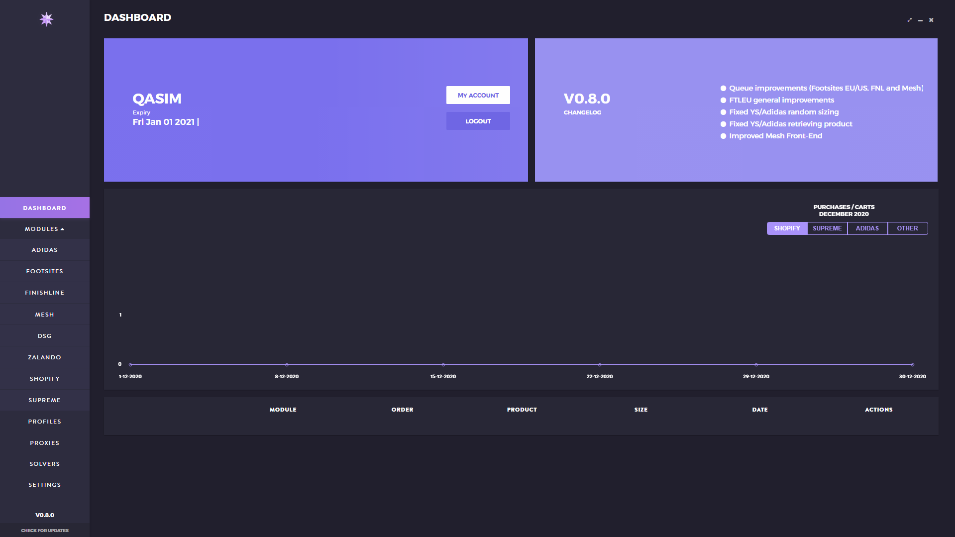 Supported sites: Adidas, Footsites, Supreme, Shopify, Yeezysupply, JD Sports, Footlocker EU, DSG & Zalando.