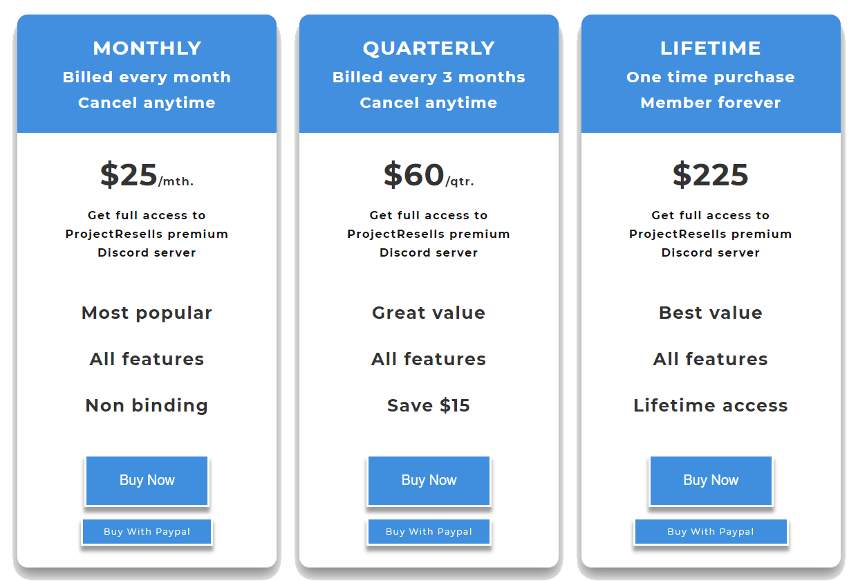 Project Resell is a premium reselling group that assists both beginners and experts. New or experienced in reselling? This group provides everything you need to become successful reseller. From beginner guides to advanced guides, the group can turn a beginner to an expert in a short period of time. With multiple staff and support members, there will be tons of active members to assist you with any questions you may have before and during a release.