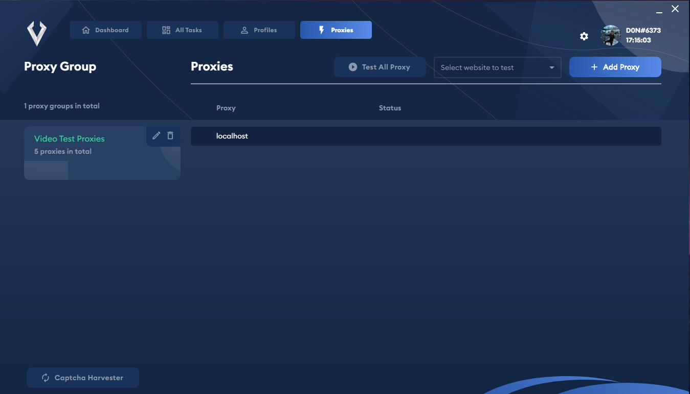 On this window within Viper, you can add proxies into groups so they can be used with your tasks. Once you have created the groups, you can edit the group or delete the group if you wish. Once you click on the group, you can view the proxies within that group on the right side, you can also test the proxies if you wish too.