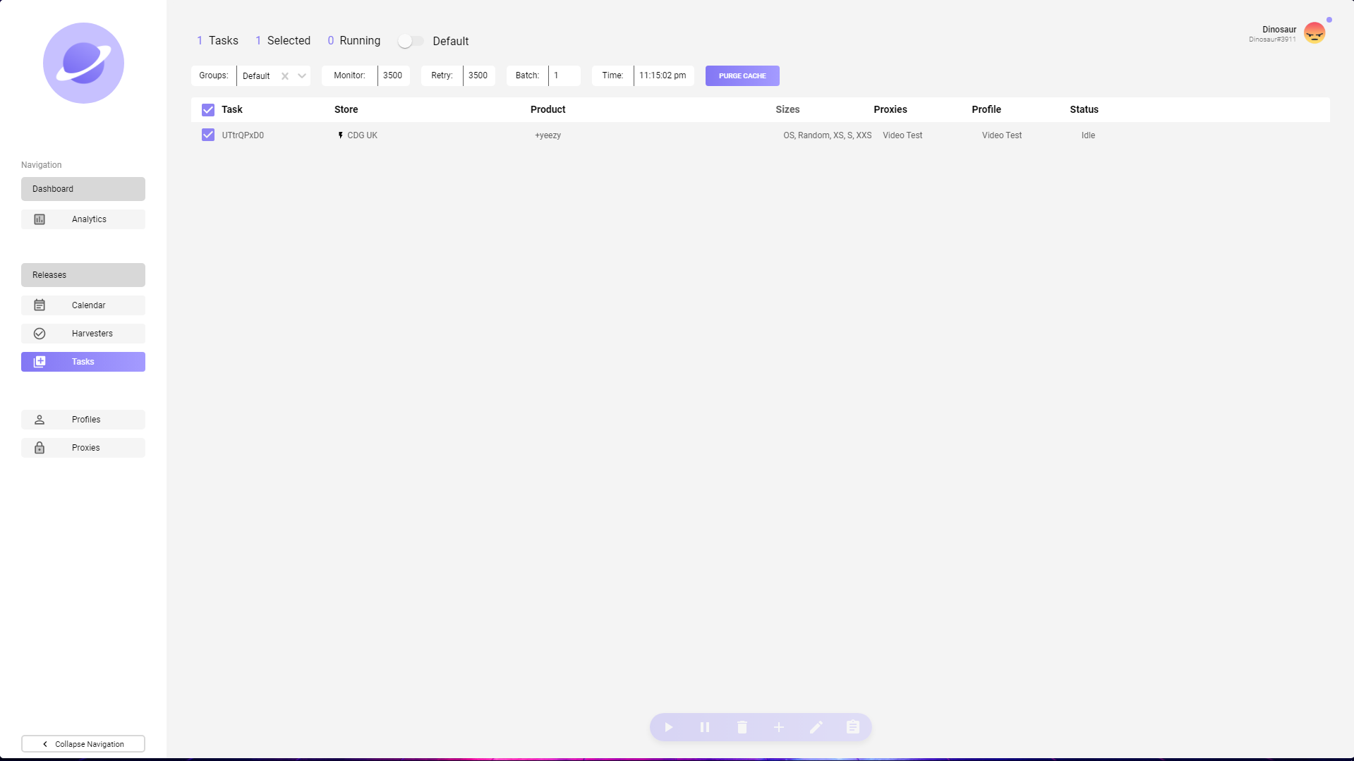 Nebula has a very easy to use user interface that is also easy to navigate, therefore, whether you're a complete new comer or an experienced botter, you will not have a problem using Nebula. They have a simple tasks page within the bot as well as an analytics page to track your activity within the bot.